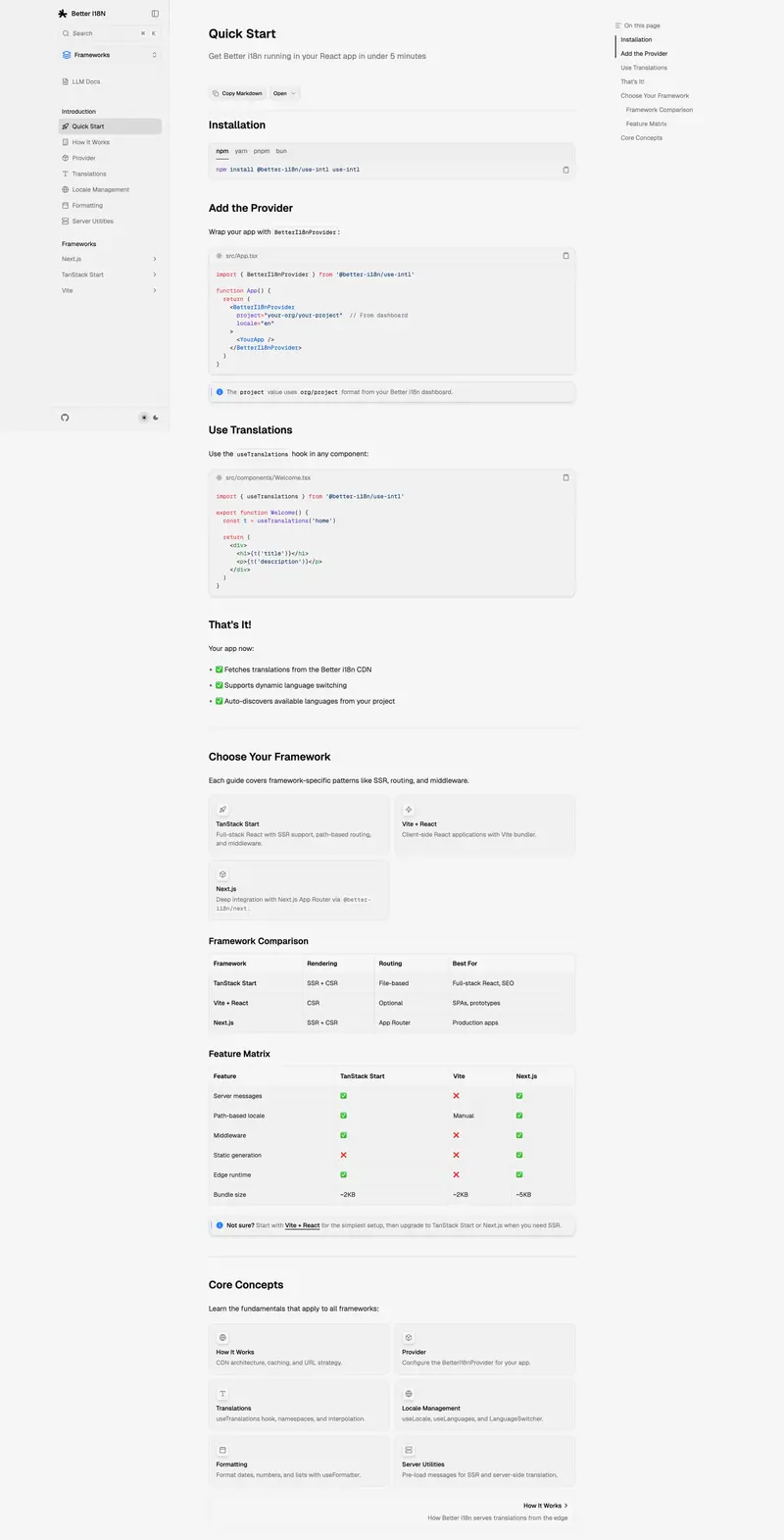 — Dev.toZero-config setup. Run bunx better-i18n init and start translating in under 5 minutes.